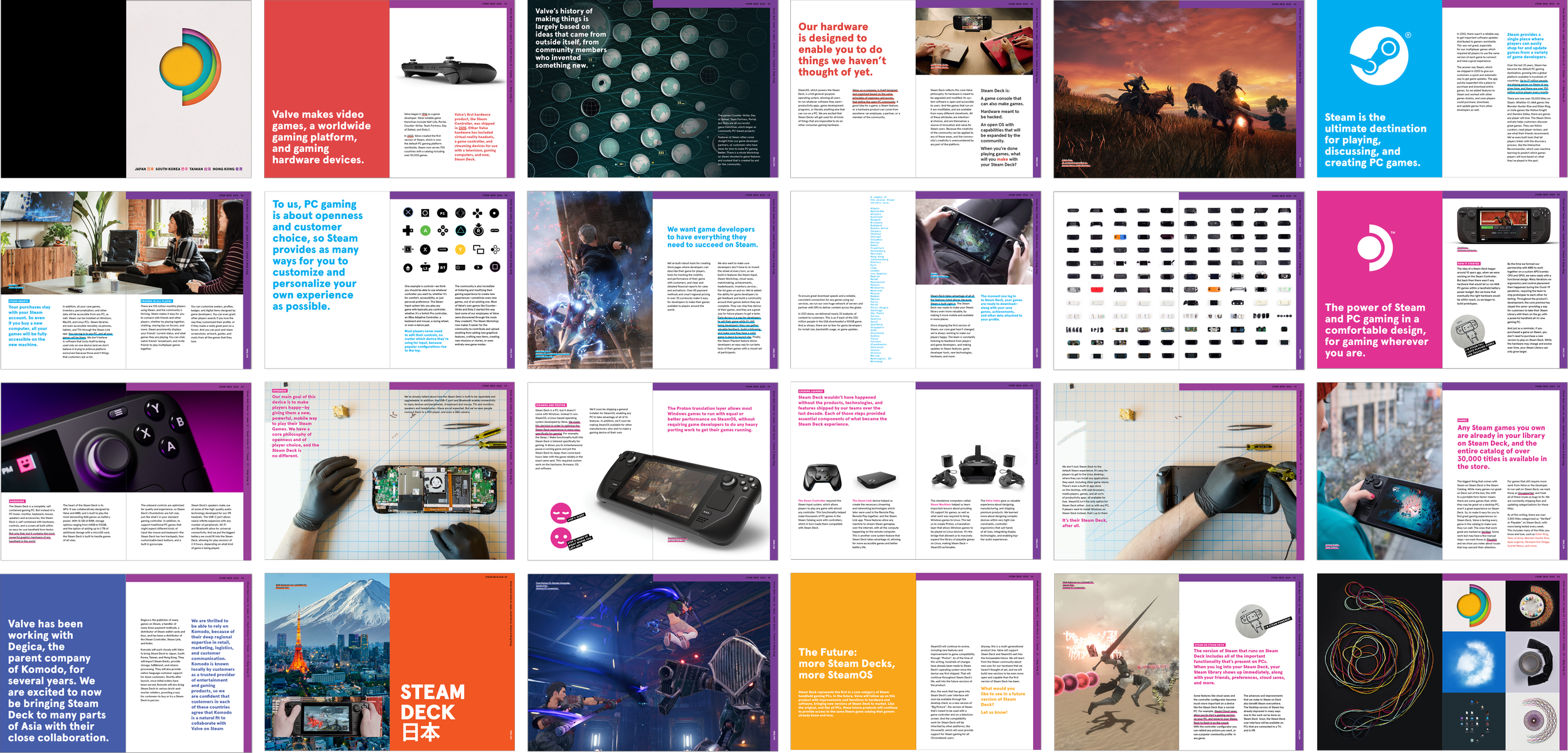 I have served as the hands-on creative director for Steam Deck since its inception. This involved leading multi-disciplinary teams through naming and branding processes, art directing photo and video shoots, building storytelling and voice, and leading design of our e-commerce presence.